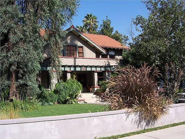This Mission inspired Carafstman has been designated Riverside City Structure of Merit #339. It was designed by noted architect Lester S. Moore and built by the Cressmer Manufacturing Company. Moore is credited for being one of the first to recognize and appreciate Mission style as a worthy architectural form. The influence of the Mission architectural style on the design of this home is apparent in some of the architectural details. The original owners of the house were Issac & Sophie Logan. Ike Logan was the County Recorder, and was also known as "the bell ringer of Mt. Rubidoux." The house is full of period details - wood wainscoting, picture molding, box beams, pocket doors, bay window, asymmetrical pillars, and skyblue marble fireplace and porch pillars. The original floorplan, character and details of the house have remained almost entirely unaltered and have been carefully maintained and preserved over the years.