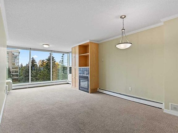 Gaze at sweeping garden and city views from this bright southwest corner unit with extra windows that flood the space with natural light, featuring a spacious layout with two large bedrooms, in-suite laundry, maple cabinets, built-in bookshelves, granite counters, tile backsplash, and modern décor, while a cozy gas fireplace creates the perfect focal point for relaxation and entertaining; included is secure underground parking and residents of Varsity Towers enjoy an unmatched lifestyle with access to an indoor pool, hot tub, steam room, fully equipped fitness centre, party lounge with games and big screen, business centre, library, car wash bay, lush landscaped gardens with BBQ areas, rooftop patios, courtyards, putting green, and greenhouse, all overseen by an on-site building manager providing peace of mind and exceptional service, plus a prime location close to schools, shopping, and dining makes this home the ultimate in urban convenience, and with flooring and paint updates needed it is priced perfectly for you to customize and make it your own. This complex is Pet Friendly and Bicycle storage also available. Condo fee not only covers all the features mentioned above, it also includes ELECTRICTY, WATER & HEAT common area maintenance and much more. Varsity Towers is located near Market Mall, U of C, Foothills Hospital, the Children's Hospital, and the New University District, with shops, restaurants, and major roadways nearby. This is a great condo, in a very nice complex, in a desirable part of the city.
