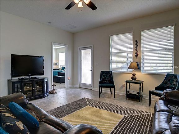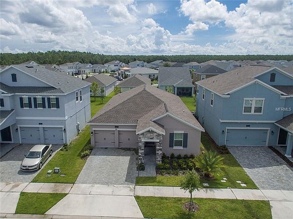 ALL YOUR DREAMS CAN COME TRUE IN THIS MOVE IN READY 4 Bedroom 3 Bath 2 Car Garage home with over 2130 sqft of living space! Single story house built in 2017 and located minutes to Disney World and all the wonderful attractions! Impressive upgrades that include paver driveway, covered front porch, tile throughout the main living areas, wet areas including entryways, kitchen, bathroom and laundry room and screened-in lanai! The floor plan was designed for ease of entertainment with expansive rooms that include a great room, dining room, butlers entry off of the two car garage and extended foyer with direct line of sight from front of home to the back of home. Spacious bedrooms contain upgraded carpet that still look and smell new. Front entry door has a keyless electronic door lock that opens to an inviting foyer welcoming your friends and family. Large windows throughout the home were designed to capture the natural light and are extremely energy efficient to help keep utility cost down. The super functional Chefs kitchen has a center island with counter height seating area for breakfast or casual dining. In addition, the kitchen contains matching stainless steel appliances, pantry closet along with shaker style cabinetry finished in chic white with upgraded molding. The solid surface countertops are appealing, easy to maintain and finished in trendy greys making for an eye-popping room and the perfect gathering spot for the entire home. Great Room, Dining Room and Kitchen are all open to each other allowing for easy conversations and enjoyment. Split floor plan affords homeowners privacy and the 3 full size bathrooms ensures that family and guest have ample room. Storey Lake is a master planned community offering wonderful amenities that include pool, playgrounds and gated access. Plenty of shopping, restaurants, entertainment and more are minutes away! Come see for yourself why this neighborhood is highly sought after by those wanting to capture the Ma
