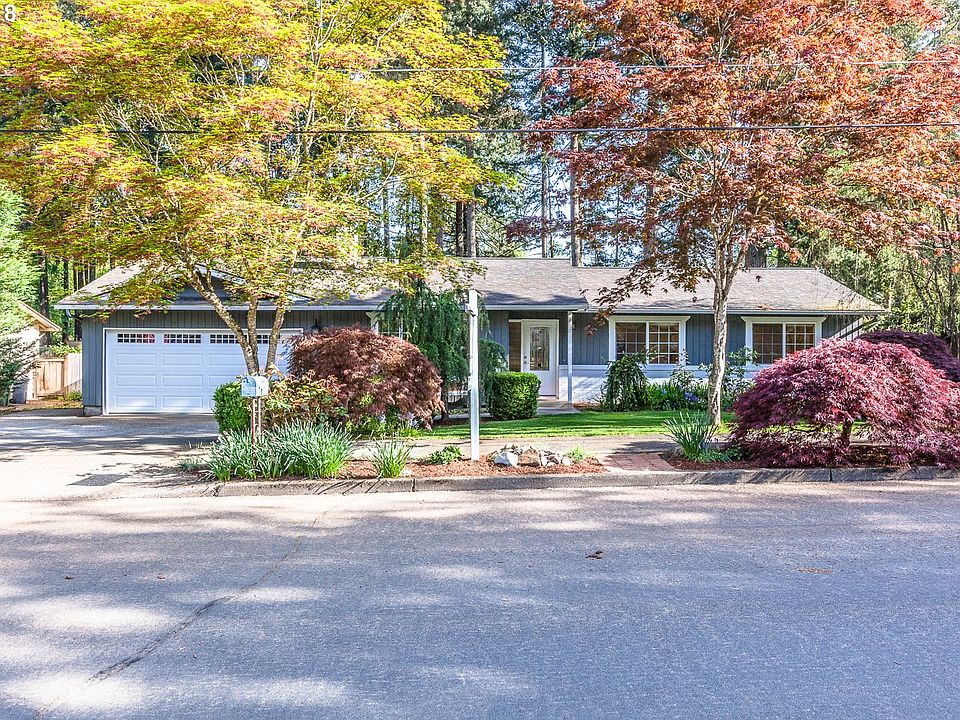 Single level home in Lake Oswego cul-de-sac. Beautifully remodeled & updated. White oak floors throughout. Great room opens to kitchen w/ nook, ss appliances, hickory cabinets. French doors leads to large Trex deck. Master retreat features vltd ceiling, large closet, and bathroom with sauna. Huge private fenced backyard. Newer roof. New A/C, furnace, H2O heater and electric panel. Access to Lake Grove Swim Park!