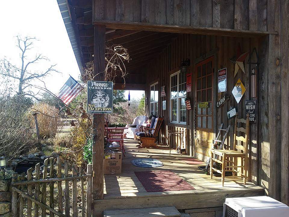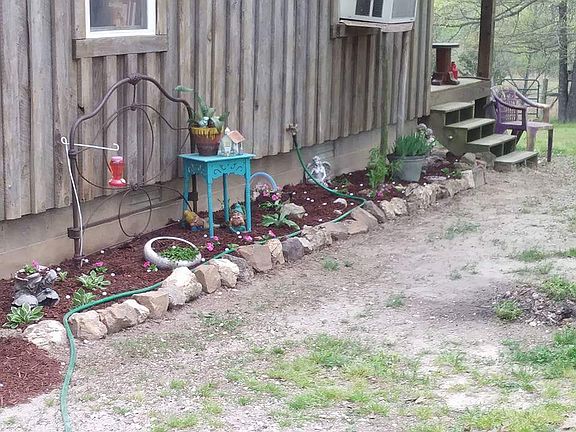 Manicured and landscaped cabin in the woods on 14+/- acres. Vaulted wood ceilings with extra loft bedroom, dedicated laundry, wood and tile floors throughout, large farmhouse sink and porches on front and back. Several outbuildings includes a storm shelter, 16X21 Carport, 24X30 Metal Shop building with 10 ft lean to on side, chicken coop, fenced garden, and several storage sheds. Land is fenced and cross fenced for livestock and has a pond. Septic cleaned out in 2018.