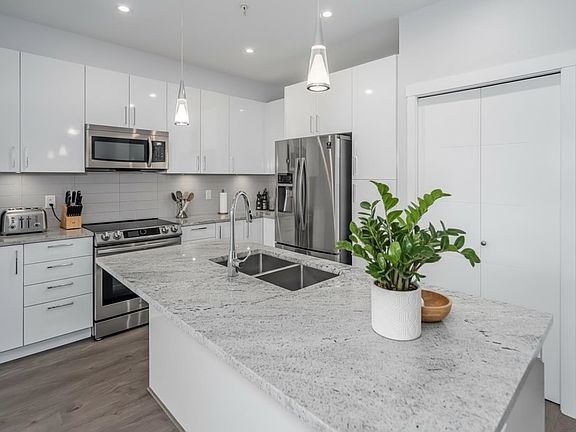 Modern style and comfort blend seamlessly in this 2 bed, 2 bath + den condo at The Elliot. The open layout showcases a sleek kitchen with granite counters, stainless steel appliances, and a large island that flows into a bright living area and north-facing balcony—ideal for morning coffee or evening BBQs. The primary suite offers a private ensuite, while the den is perfect for a home office or cozy reading nook. With same-floor storage, secure parking, and a pet-friendly policy (no size restrictions), this home delivers effortless living close to shopping, dining, and highway access. OPEN HOUSE Sunday Nov.9 from 2:00 pm-4:00 pm