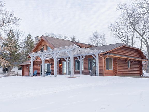 Experience lakeside living at its finest in this stunning year-round log home on the sought-after shores of Rush Lake! Situated on a level lot with 100’± of hard sand shoreline, this lake is great for swimming & recreation, along with incredible fishing for walleye, panfish, and large-mouth bass. With 4 bedrooms, 3.5 bathrooms, a den, and a huge family/game room, you’ll find ample space for entertaining and room to spread out. The open-concept living area features gorgeous knotty alder cabinetry, built-ins, and a stunning floor-to-ceiling rock fireplace. Step outside to your new lakeside deck with a charming pergola, where you can relax and watch the sunsets over the water. A concrete firepit area awaits for evening gatherings, making it the perfect place to enjoy the serene lakefront setting. On the 1.38± acre backlot, you'll find a huge 44' x 64' shop with concrete floors and wall-to-wall shelving that gives you more than enough storage for all your lake toys, gear, and tools. Recent updates include newly remodeled bathrooms, many new appliances, updated flooring, a new roof, and a newly rebuilt chimney. The septic system is compliant, giving you peace of mind for years to come. This home truly has it all – luxury, comfort, and convenience – all nestled on one of the best lakes in the area!