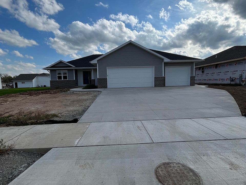 Gorgeous new 1,582sf home w/a 3-stall attached garage located in the Village of Howard. Open floor plan featuring a split bedroom design w/3 beds & 2 baths. Inviting foyer opens to the living room featuring a gas fireplace. The kitchen offers custom maple cabinets, a walk-in pantry, & a stainless steel dishwasher & microwave. 1st floor laundry room & large walk-through closet, entering the master bedroom. Master suite has a tray ceiling, a private bath w/double sinks & a walk-in shower. Full basement w/egress window, & is plumbed for a future bath. Exterior features include a covered porch, horizontal siding & vertical siding, & brick all per plan.