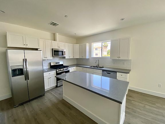 Townhouse style unit with new laminate wood flooring throughout. Large, spacious, full size bathrooms and bedrooms with walk in closets. Open floor plan kitchen with new stainless steel appliances and quartz countertops. Recessed lighting throughout unit. Washer / Dryer in unit.. Unit includes two car tandem garage plus and extra storage room. One year lease. Pets negotiable. Tenant pays for all utilities except gardener. Unit is in move in ready condition.