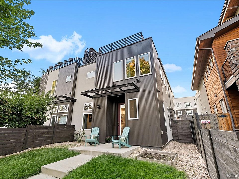 Situated on one of the best blocks in Berkeley; tree-lined and quiet, this beautiful home is what you have been waiting for - abundant space, blocks from the heart of Tennyson Street, a rooftop deck and an open kitchen to host friends and family. Neighbors on this street gather, hang out and share afternoons in this idyllic neighborhood just named #1 neighborhood in Denver by 5280 Magazine! 4557 Stuart Street welcomes you at the front door with a floorplan that seamlessly combines the living, dining and kitchen areas for easy living. The main floor also has an amazing dedicated office with glass doors to easily have the privacy needed to work from home. The second floor boasts a large primary suite with a walk-in closet, a five piece bath and large windows that let in the sun for incredible natural light. This floor also has two secondary bedrooms and a full bath. Head up to the third floor for a lovely wet-bar leading out to an expansive rooftop deck, as well as another bath (3/4) and a bonus room that could be used for lounging or a non-conforming fourth bedroom for guests to have their own hideaway. The outdoor space on this home is vast - from the rooftop deck to the patio off the kitchen with a built-in gas grill and grassy area for pets or kids. Heading to Tennyson Street for dinner you don't even have to take the cars out of the detached two car garage! Indulge in all that Berkeley has to offer in this exceptional property - you will be so excited to call this place home!