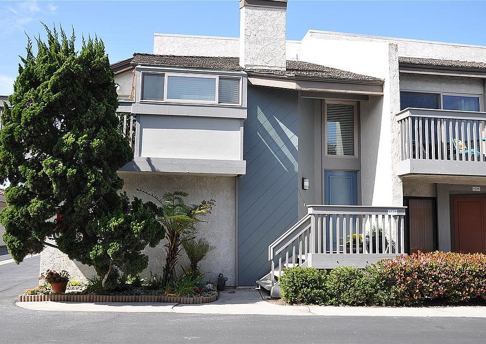 This desirable "Hollywood Beach Retreat" is a corner unit with an open floor plan with vaulted ceilings, a gas fireplace, balcony, marina view, and a large 2-car side-by-side garage w/storage. This cute condo is located 2 short blocks from the sand and one block to the marina. Location is amazing! Restaurants are within walking distance. On-site amenities (2 tennis courts, 4 pools, 4 spas, a clubhouse and RV storage). Remodeled kitchen and bathrooms with over-sized tub, newly tiled shower, and granite counters. Custom glass and mirrors give it an elegant touch.
