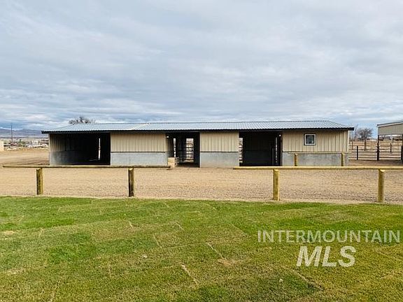 The Horseman’s prefect irrigated 5 acre setup. 1998 completely remodeled 1782 square foot 4 bedroom, 2 bath home offers High end custom kitchen cabinets, new windows, new stainless appliances, new floors, new doors, Large solid surface island and counters. Large open living room with eating area, Primary suite offers a large bedroom with custom dual vanity, beautiful walk-in shower, walk-in closet. Rough cut Pine front and back yard covered porches with rough cut Pine trim, sets this home apart from the rest. Irrigated pastures with brand new fencing, wheel lines for easy irrigation. 4 horse stalls with runs, tack room, hay storage. 24’x24’ shop with OH door, 220v power, driveway is lined with beautiful pine trees, fully landscaped, move in ready! FANTASTIC PROPERTY!!