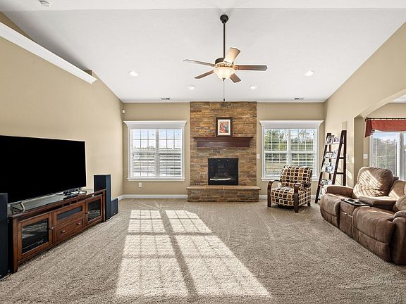 Meticulously maintained like new ranch with in ground pool, on a private .41 acre lot in Lafayette's southside Concord Ridge neighborhood. With 3 bedrooms/2.5 baths and over 2200 SF in living space, this house is the perfect oasis for you and to host your friends and family. The main floor highlights include: a spacious Great Room with a gas log fireplace with full stone surround and hearth, kitchen with raised bar and island seating, abundant custom cabinets, induction cooktop and beautiful quartz countertops; a luxurious primary suite with tray ceiling, custom tiled shower, dual sink quartz top vanity, and walk in closet. Secondary bath has extra long jetted and heated tub. Quartz counters throughout. The backyard is your own getaway, with the inground heated pool with slide, private feel, and gorgeous pond views -- perfect place to watch those Indiana sunsets. Schedule your showing today before this one is gone!