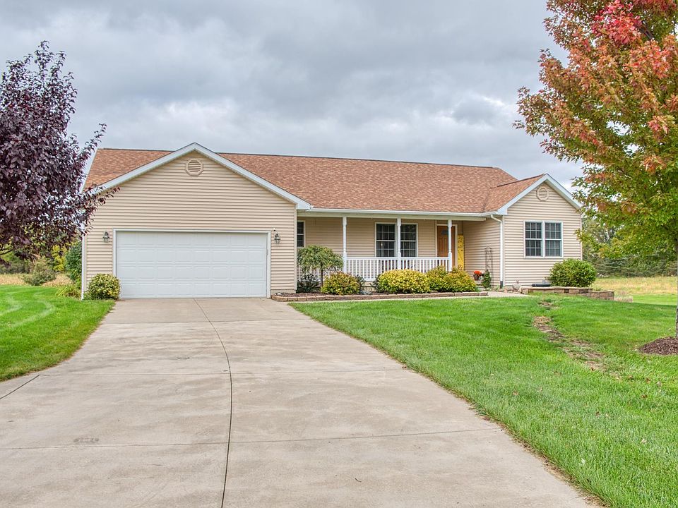 OPEN HOUSE! Sunday, Oct 22 from 2pm to 330pm Call direct - don't hit that "contact agent" button! Gorgeous Corunna ranch, just out of town on 2.5 acres! Beautiful new kitchen with solid-surface tops, huge island with seating, tiled splash, stainless steel appliances and wood floors. Open living area with vaulted ceiling and slider to deck. Separate dining area too! Split floor plan with the primary suite on one side of the house, including a walk-in closet and well-appointed bath tiled walk-in shower. Two more main floor beds at the opposite side of the house plus a nice bathroom. The walk-out basement is finished with family room, boasting a stone fireplace, charming bar area, two more bedrooms with egress windows (for a total of 5 beds!) and another bath with tiled walk-in shower (for a total of 3 baths!). Huge deck, 2-car garage plus AWESOME pole barn with covered patio!