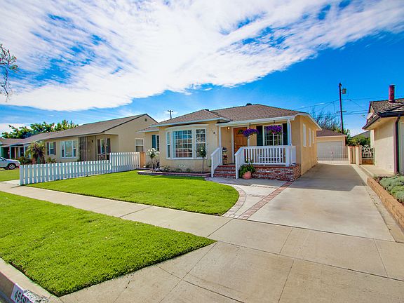 Immaculate Lakewood Park Beauty! Move-in ready with great curb appeal! Stunning three bedrooms, one bath w/ approx. 1,082 sq. ft. which includes bonus den located on an approx. 5,115 sq. ft. lot. Interior Amenities: remodeled kitchen includes custom wood cabinetry, granite countertops, Maytag appliances, ceramic tile floors, extra storage, and breakfast nook eating area, living area includes hardwood floors throughout w/ carpeting in 2 bedrooms, textured walls, recessed lighting, central A/C & heating, crown molding, dual pane windows w/ beautiful large front Bay Window, remodeled bathroom which includes ceramic tile, custom cabinetry, newer ceramic sink, tub, and power flush toilet and separate interior laundry area with extra storage. Exterior Amenities include: new roof, new electrical panel, tankless water heater, two car detached garage w/ automatic door, custom designed front brick porch w/ banister, front white Picket fence, sprinklers in front and rear yards, outdoor electrical outlets, lush brick planters manicured beautifully w/ mature plants, trees and flowers, canopy w/ concrete patio area and brick ribbing in rear yard - lovely for entertaining! A must see - close to shopping, schools, parks, nature walk, and freeways. Don't miss out!!