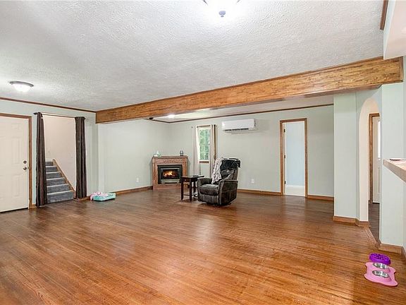Cozy gas fireplaceWelcoming front porchUpdated cabinetryNewly stained front deckStriking ceiling beamUpgraded formica countertopsVersatile bonus room