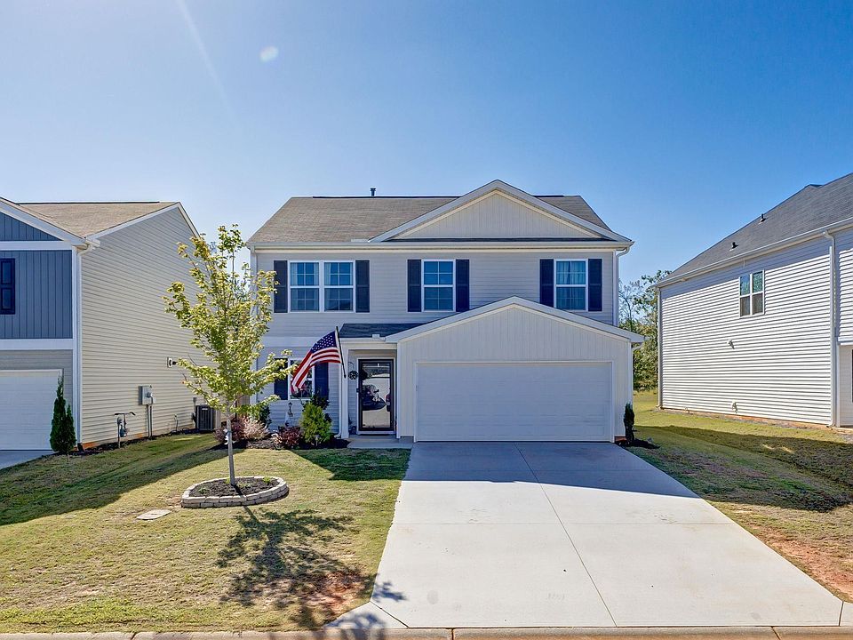 Fresh, bright, and ready for you to call home, this newer Easley gem is spacious and inviting. As you approach the neighborhood, you’ll enjoy mountain views and a walkable community with sidewalks that set the tone for the welcoming atmosphere. Step inside and you’re greeted by a light-filled foyer featuring a custom built-in nook with board and batten, hooks for coats and backpacks, and a convenient powder room. From here, the home flows seamlessly into the formal dining room, spacious kitchen, and open living area. The kitchen is stunning with expansive granite countertops, a stylish new backsplash, an additional breakfast nook, and plenty of cabinetry. The space opens to the inviting living room with a fireplace, creating the perfect hub for everyday living. The primary suite is conveniently located on the main level, featuring a massive walk-in closet, double vanity, and shower. Upstairs, you’ll find a versatile loft that is ideal for a playroom, media room, or hobby space along with three additional bedrooms and a full bath with a double vanity. One of the features the sellers love most is the abundant space, with extra closets throughout and an attic larger than most homes, so storage is never an issue. The 2-car garage provides even more functionality. Outside, enjoy the fenced-in backyard with peaceful views beyond and a cozy gathering spot perfect for evenings by the fire and a covered patio perfect for lounging and grilling. Location is everything: Less than 10 minutes to Downtown Easley and the Doodle Park, only 15 minutes to Downtown Greenville, 30 minutes to Clemson University, and under 40 minutes to Lake Keowee. This home is ready to welcome you, come see all it has to share!