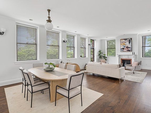 Payson Estate at Oakley Hill. Superb 2 bedroom, 2.5 bathroom duplex with three exposures. All-day sun and semi-private entrance makes this feel more like a private home. Grand open living/dining room with walls of oversized windows and high ceilings adds to the overall airiness. The renovated kitchen includes granite countertops and stainless appliances. The primary bedroom is spacious with double closets and opens to an exclusive-use patio. The primary bathroom is marble and tile with a double vanity and dual shower head walk-in shower. The second bedroom would work great as a den, office or bedroom. The hall bath has a soaking tub and shower. Hardwood floors throughout and spacious closets. Utility room on garden level with updated heat pump and washer and dryer.Very large storage unit in basement. Beautiful in-ground swimming pool.Payson Estate is a short walk to Cushing Square and transportation to Harvard Square.