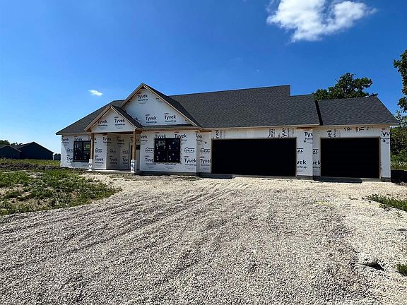 Custom Built 3 Bedroom, 2 bath Ranch Home Attractive Mable Cabinets in Kitchen, Laundry and Baths Premium Stainless Steel Dishwasher, Microhood and Upgraded Premium Countertop, a Spot Resist Stainless Pull Down Kitchen Faucet along with a Quartz Single Bowl Drop-in Kitchen Sink Rear Patio Slider Door in Dining leading to the Covered Patio Lighted Ceiling Fan in the Great Room and 9' Ceilings, Rounded Drywall Corners and Upgraded Lighting throughout the home. Locking Vinyl Plank in Great Room, Kitchen, Dining, Laundry and both Baths. Primary Bedroom with a Lighted Ceiling Fan, Walk-in-Closet and a Full View Glass Patio Door opening to the back Covered Patio Primary Bath has a 5' Walk-In Shower, Rain Shower Head and a 36" Tall Vanity together with Cultured Marble Vanity Tops and Upgraded Bath Fixtures in both Baths Standard Semi-Finished 3 Car Garage with Wireless Keypad and Door Open for Both Bays 95% Efficient Gas Furnace and Central Air Conditioning with Fresh Air Ventilation and Programmable Thermostat Upgraded Front Door with sidelites on each side Beautiful Exterior with Address Stone, Vinyl Board and Batten Siding, Stone Columns with Painted Square posts, Upgraded Exterior Light Package, Vinyl Siding and Landmark Shingles along with Partial Stone Front