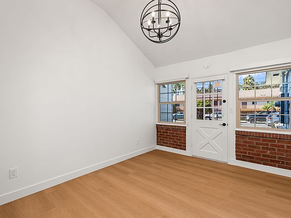 Discover this charming two-bedroom, one-bath Cottage, fully remodeled with stylish finishes and modern conveniences. The home features luxury vinyl wood floors throughout, creating a warm and inviting atmosphere. Step inside to a welcoming living room on the first floor, while stairs lead you to the second level featuring two bedrooms, a full bath, and a thoughtfully designed kitchenette with a microwave, induction cooktop, and countertop toaster oven. The newly remodeled bathroom boasts a soaking tub with slate gray porcelain tile, mosaic accents, a sleek gray vanity, and designer black fixtures, blending comfort with contemporary design. Enjoy a private patio perfect for outdoor relaxation, the convenience of an in-house full-size washer and dryer, and two off-street parking spaces. Ideally located in Downtown Chula Vista, this townhome is close to shopping, restaurants, and entertainment, offering both convenience and lifestyle.