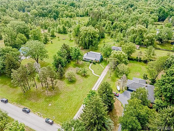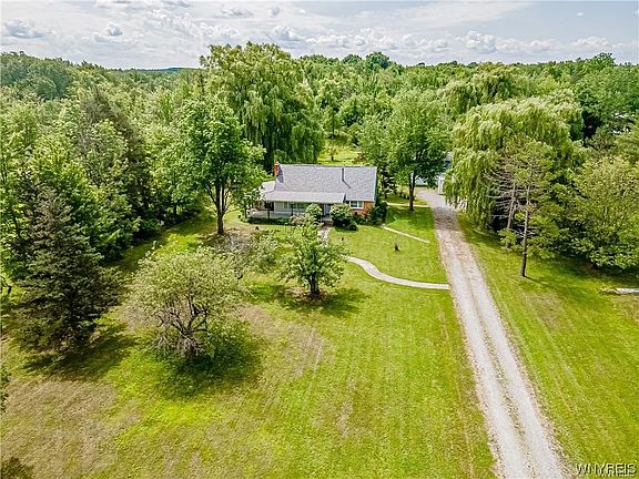 NATURE FILLED LOCATION WITH PARKLIKE SETTING AND PEACEFULNESS HIGHLIGHTS THIS ONE OWNER HOME SET ON 7.1 ACRES. HORSES PERMITTED! 4 SPACIOUS BEDROOMS, 2 FULL BATHS, HARDWOOD FLOORING, FULL BASEMENT WITH BILCO WALKOUT, OVERSIZED WONDERFUL COVERED FRONT PORCH WITH ACCESS TO DELIGHTFUL FAMILYROOM. 2-STORY DETACHED GARAGE. ROOF - 11/2021! ENTIRE PROPERTY SOLD IN AS-IS CONDITION. BUYER RESPONSIBLE FOR SEPTIC. EXCLUDE DINING ROOM FIXTURE. MINS. TO RTE 400 AND ALL AMENITIES. IROQUOIS SCHOOLS. COME MAKE IT YOUR OWN AND ENJOY!