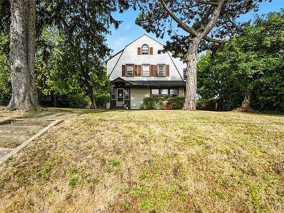 This HOME is AMAZING! So much charm and character. The brick fireplace has built-in cabinets with leaded glass doors. Beautiful wood work and wooded doors throughout, built in cabinets and drawers, beamed ceilings, one of a kind light fixtures, and hardwood floors throughout. 4 bedrooms. Master bedroom has his/her closets. Sunporch off another bedroom. Kitchen includes updated appliances and has an attached breakfast room. Full bathroom has original subway title. Finished attic for even more living space. Updated: tear-off architectural roof, gutters, boiler, plumbing, electrical, hot water tank, drywall, maintenance free vinyl siding. Driveway (off Eugene) leads to the enormous 3 car garage.
