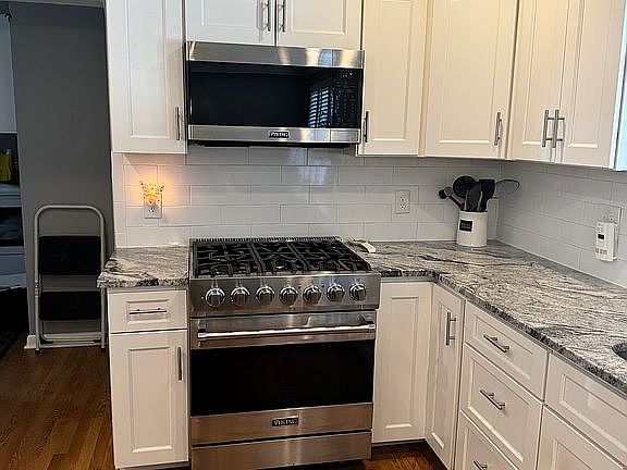 Beautifully refinished solid brick rancher, fully updated in 2020 and extremely well maintained. This 3-bedroom home features hardwood floors throughout, granite countertops, plantation shutters, and an eat-in kitchen with Viking stove and microwave.