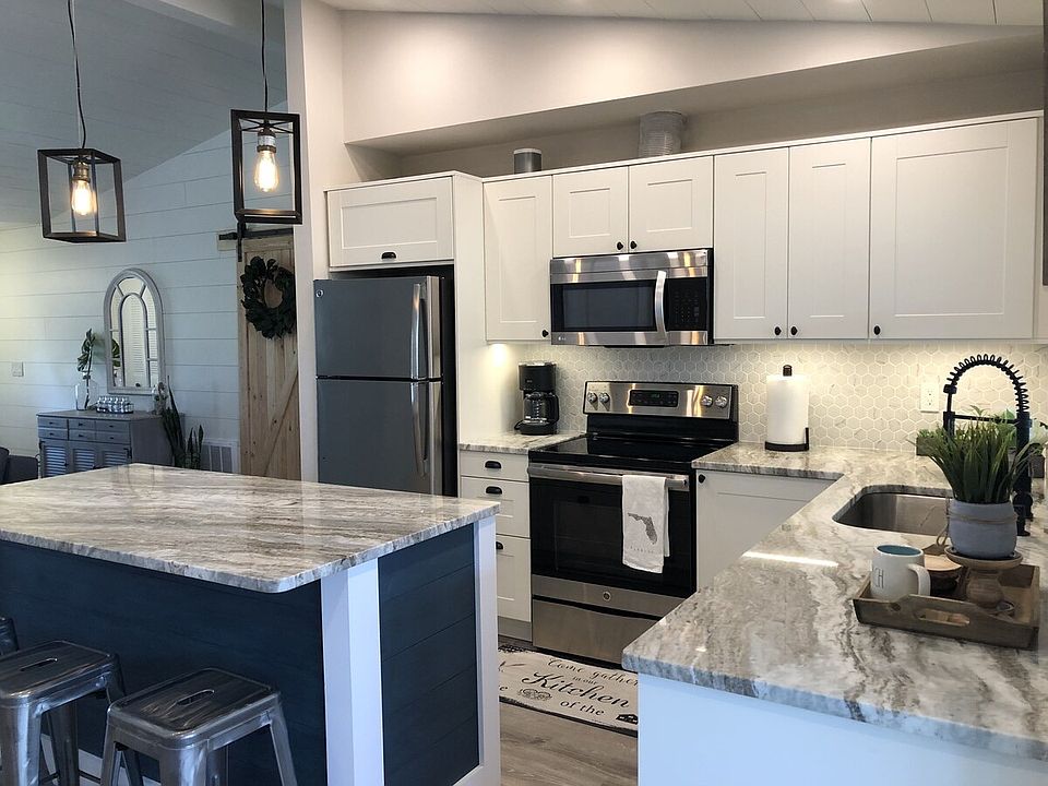 Newly renovated home with heated salt water pool, and hot tub. Close to beaches, modern and inviting with private pool and two king size beds. Come and enjoy this newly remodeled and private home! This house is centrally located with easy access to the beaches, restaurants and shops. With a 8 minute car drive, you can reach Manasota Key beach; several other beaches are nearby as well. The house has a brand new, Sunny western exposure, salt water heated pool as well as stand alone jacuzzi. Beautiful and specious paved patio with newly installed screen enclosure covering the entire area. The kitchen is modern and fully equipped should you decide to stay in and make a meal. Both bedrooms have king size beds (Guest Master is Firm memory foam)