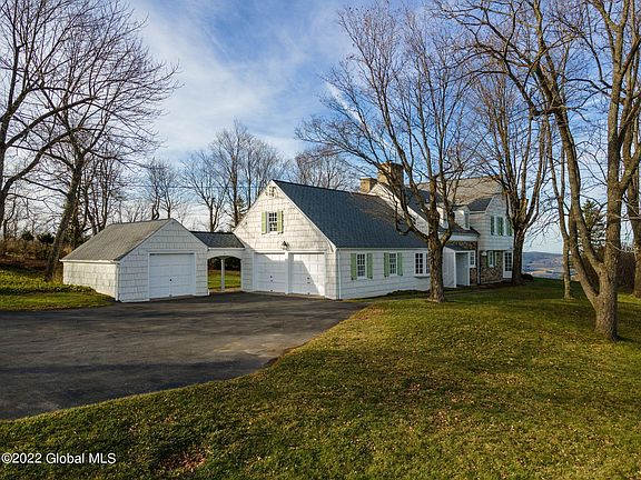 Amazingly rare opportunity to own this stunning 3,300 sqft, 3-bed, 3.5-bath historic Colonial w/magnificent views on just under 200 acres of pristine farmland. Designed by Charles E White Jr who had worked with Frank Lloyd Wright, features include a formal living room w/floor to ceiling raised panel wainscoting highlighting a wood fireplace; arched doors lead to formal dining room w/built-in corner cabinets. Spacious kitchen w/commercial gas cooking stove; library/office finished with Pickwick tongue & groove wide plank pine; 2 primary bedrooms, finished lower level w/wood fireplace; custom detailed molding.