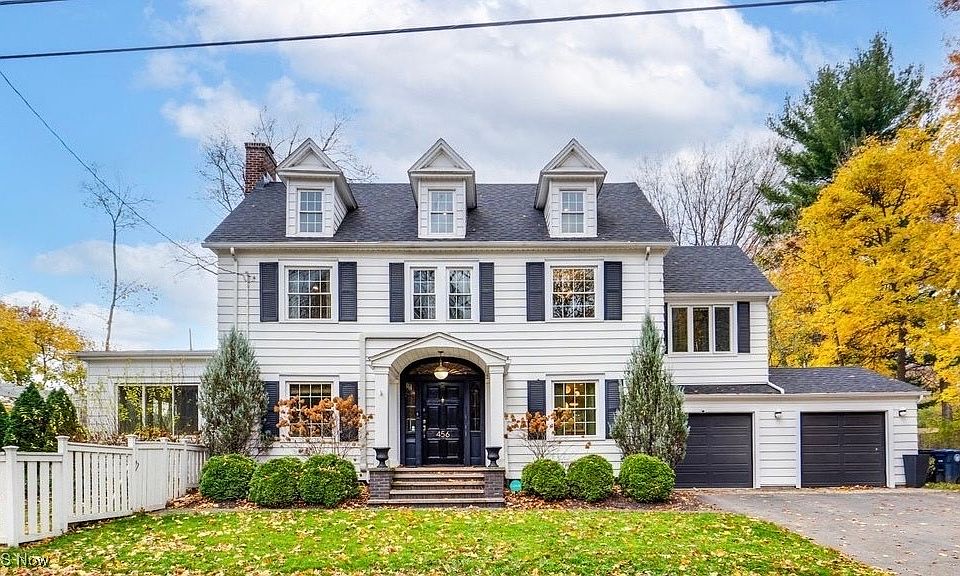Beautiful West Akron colonial blending classic character with elevated modern design. Step inside to a warm foyer with hardwood floors, crown molding, and an elegant staircase that sets the tone for the rest of the home. The front dining room features hardwood floors, while the inviting sunroom offers the perfect flex space for work or relaxation. The kitchen delivers a stylish mix of black slate flooring, granite and marble counters, and a STUNNING Jonathan Adler chandelier over the island. The living room centers around a fireplace wrapped in marble tile with another walkout to the outdoor space. The primary suite is a true retreat! Hardwood floors, a walk-in closet with washer/dryer, and a stunning bath with heated marble floors, a marble double vanity, and freestanding tub. Additional baths include penny tile and marble finishes. Major improvements include a newer roof, new heat pump/AC, newer siding, newer windows, newer garage doors and openers, driveway, newer stone walkway and porch, basement lighting, a waterproofed basement, updated electric, updated plumbing, boiler serviced every year, and newer hot water tank add peace of mind. Outside, enjoy a back deck and patio with pergola and projector screen, perfect for entertaining! New sidewalks complete the polished curb appeal. Move-in ready with thoughtful upgrades throughout.
