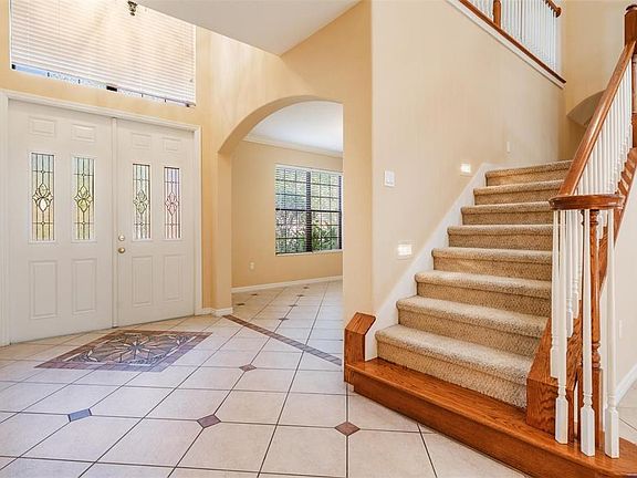 Welcome to this stunning 5-bedroom, 3-bathroom, 4,126 sq. ft. pool home designed for both elegance and comfort while being located in desirable gated community. The saltwater pool with spa, screened-in porch, and private balcony create the perfect setting for outdoor relaxation while overlooking the serene conservation views. Inside, you’ll find a thoughtfully designed two-story layout featuring a first-floor master suite with a walk-in closet, formal living and dining room, and a spacious kitchen with breakfast nook that opens to a cozy family room with expansive sliding doors to the pool. Upstairs offers three bedrooms, a family room, and a large game/flex room that can easily be converted into a 6th bedroom if desired. The home also includes a 2-car garage, indoor laundry/utility room, and dual staircases for convenience. Perfect for entertaining or family living, this home blends functionality with luxury in a private backyard oasis. Enjoy the convenience of being just a golf cart ride to the grocery store while still tucked away in a secure, tranquil setting.