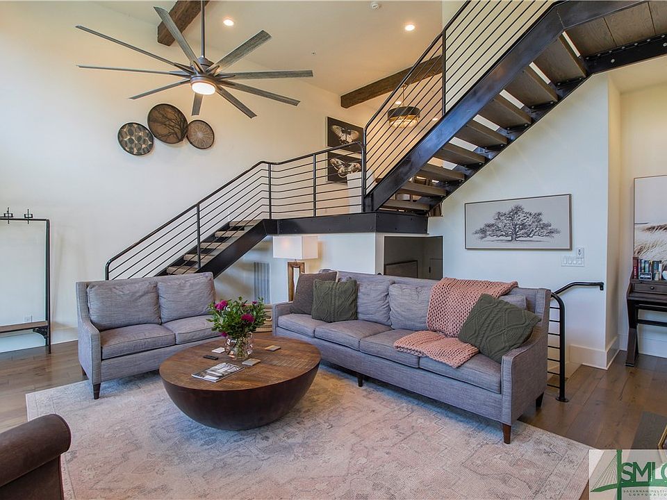 Experience the perfect blend of downtown, riverfront living in a park-like setting at this Upper East River modern industrial attached single family home. Seller offering a 6-12 month leaseback option. Excellent as a full-time residence or a turnkey income producing property with furniture negotiable. Extras include a private elevator, EV charging, custom window coverings, soaring 14-foot ceilings in the living area, and wide-plank wood floors throughout. The stunning chef's kitchen and primary suite are sure to impress. The top floor boasts a flexible space leading to a private rooftop terrace, perfect for relaxing and stargazing with river views in both directions.. This property also includes a 2-car garage and off-street parking. Amenities Center construction to begin in 2025, featuring a pool, fitness center, bar, and courtyard overlooking the Savannah River. No HOA until amenities center is built!