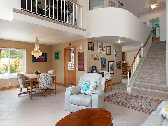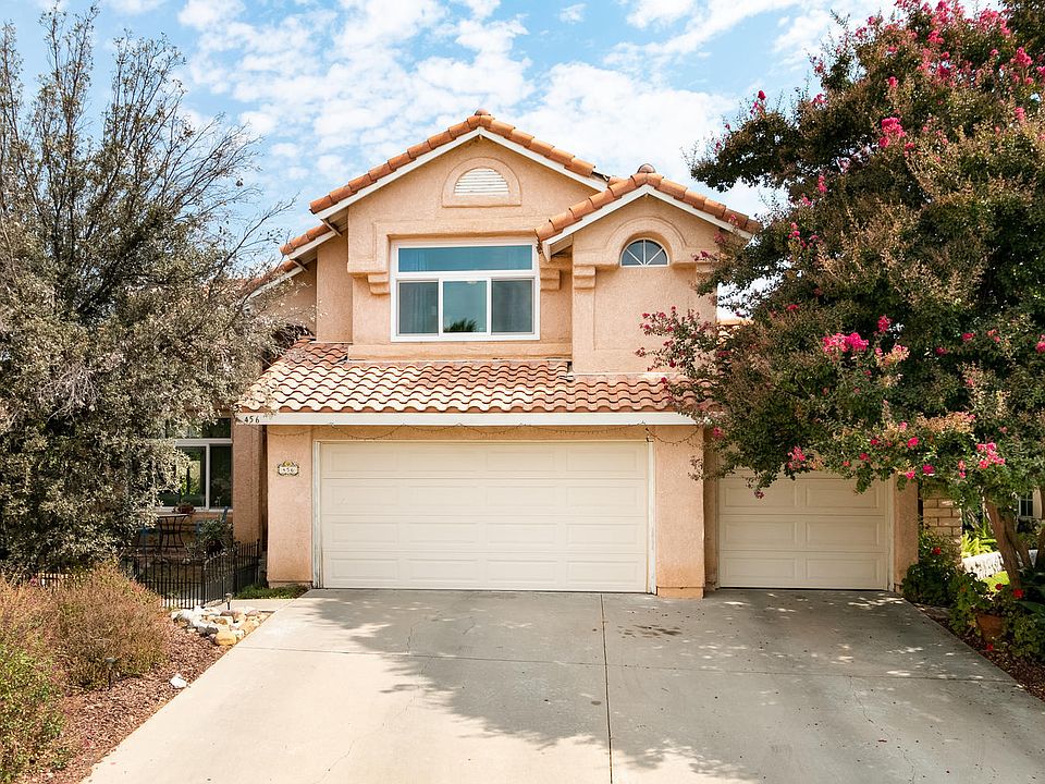 This beautiful 3 bedroom, 3 bath, 3 car garage home is located at the end of a quiet cul-de-sac in Fillmore California, named by Sunset magazine as 'The Last, Best, Small Town in Southern California' The open floor plan is bright and airy, it features custom interior paint, new double pane vinyl windows, custom tile & stone flooring, premium carpeting and ceiling fans throughout. Downstairs you'll find the family room, dining room, kitchen, guest bathroom, laundry room and den. The den has a cozy fireplace. and, as you can see in the pictures.... a great view of the back yard! The kitchen features upgraded stainless appliances, recessed lighting, bay window, and quarts countertops with custom backsplash. Upstairs there are 3 bedrooms, a 2nd bathroom, and a large loft that could easily be converted into a 4th bedroom. The primary bedroom has tile floor, lots of closet space and a private bathroom with dual vanity. The back yard affords stunning views, drought tolerant landscaping and a number of fruit trees, including apricot, avocado, cherry, Santa Barbara peach, navel orange, Pom Wonderful pomegranate, plum, and Fuyu persimmon. Close to schools, parks and 3.8 miles of scenic walking/bike path. So, you better act fast, this one won't last long!