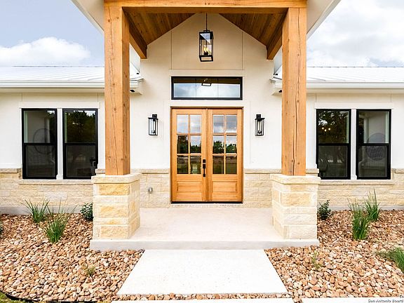New by Pillar Homes - Experience Hill Country elegance in this new stunning modern farmhouse located in the growing community of Cielo Rio Ranch in Pipe Creek, TX. Sitting on almost 3 acres of land, this is a 4 bed, 3.5 bath, + office home that blends luxury craftsmanship with everyday comfort. Step through the double front doors into a bright, open living space featuring vaulted ceilings, hardwood floors, and a wood-burning fireplace, thoughtfully designed with custom details throughout. The gourmet kitchen includes quartz countertops, custom hood, huge eat-in island, and gas cooking - and the extended butlers pantry provides an additional prep and cook space - great for both entertaining and family gatherings. Seamlessly transition outdoors through the oversized patio slider to a private outdoor space equipped with an outdoor kitchen, perfect for enjoying the hill country's beautiful evenings. This property truly captures the charm of country living with modern luxury - don't miss your chance to call this retreat your own.