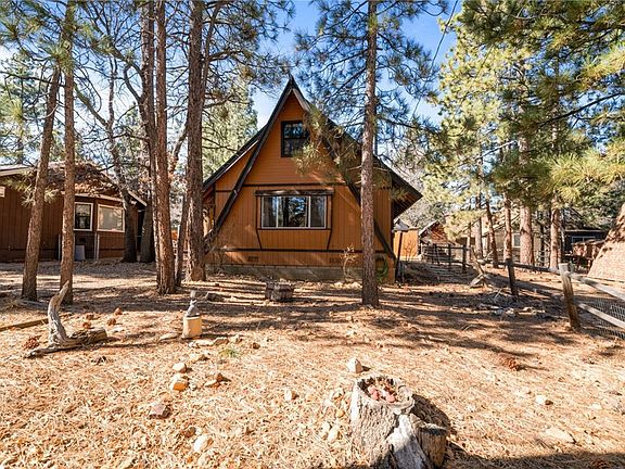 Don't miss out on this adorable "A" frame home! This charming mountain property is nestled in the trees offering a peaceful escape from the hustle and bustle of the city. Located on a spacious 5,000 square foot lot, this single-family home features 1 bedroom on the main level and plenty of room for the whole family in the extra large loft upstairs. Central heating, fenced back yard, newer roof, flooring, paint and water heater. Walking distance to the National Forest and just a few miles to the ski resorts, shopping, restaurants, lake and village. Near Hwy 38 for easy access on and off the mountain, this home comes fully furnished and would make a great full time residence, vacation home or short term rental. It has been meticulously maintained and well loved for over 25 years and is ready for the next family to start making new memories!
