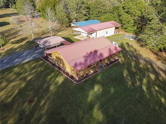 Desirable and durable...this log home makes you feel like you are on vacation, yet it's so practical as well. Do you love porches? Front and back porches expand the entire length of both the log home and the workshop. Large 2.3 acre lot in desirable Kitchen Creek neighborhood of Pollock. Wooden beams, cathedral ceiling, so much to appreciate here. Fenced area and dog house already ready to go for your beloved pet. The workshop is 30x40 and has 15ft wide covered porches on both front and back for lots of covered space for any projects or gathering spaces desired. You will love the convenient, yet peaceful location. Metal roofs approximately 13 years old on both shop and house. HVAC and hot water heater only 3 years old. Built to last, aesthetically pleasing...opportunities for a fine log cabin homeplace with workshop and double carport like this do not come up often.