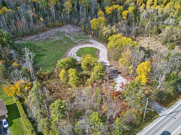 Escape to your own private 12-acre woodland retreat! Imagine designing your dream estate on this secluded, partially cleared lot, perfectly nestled in a mature forest steps to all amenities. Enter through the majestic gates into your own kingdom. This property is the ideal setting for those who crave privacy, peace, luxury and nature without sacrificing convenience. Enjoy the best of both worlds: the tranquility of the countryside with all the benefits of city proximity. Located in a highly-desired area, you're just moments from top schools, shopping, and amenities. For commuters, it's a dream location, offering immediate access to Highways 401 and 407 for an easy 30-minute trip to Toronto. This lot is ready for your vision and the permitting process, offering flexible servicing options including potential municipal sewer connection or a private septic system (buyer to verify all details).This is a rare opportunity to create your legacy. $100,000 in improvements since last purchased getting it ready for you.