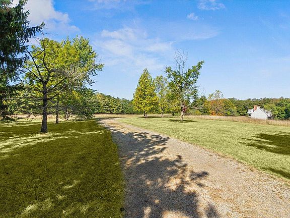 The grounds tell their own story. A stately bank barn, crafted with a limestone foundation, post-and-beam construction, a metal roof, and twin cupolas, stands proudly as a reminder of timeless tradition. Pastureland stretches across the property, while wooded paths wind through the back acres, inviting exploration and quiet reflection.
