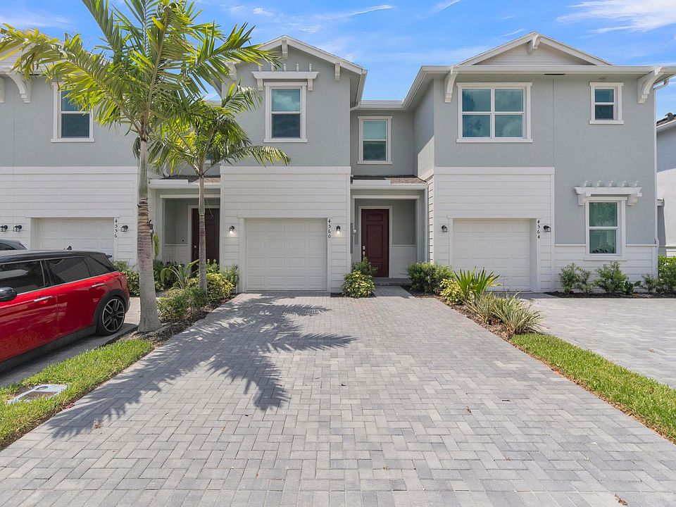Step into modern elegance with this stunning 3-bedroom, 2.5-bathroom townhouse, built in 2024 for both comfort and style. The sleek quartz countertops and pristine white cabinetry create a luxurious kitchen space, while impact windows and doors provide security and peace of mind. Enjoy laminate flooring on the first floor, where a convenient half-bath is located, and plush carpeting on the second floor, adding warmth to this thoughtfully designed home. Convenience meets functionality with a washer and dryer on the second floor. Outside, you'll find a two-parking driveway along with a spacious one-car garage ideal for multiple vehicles.