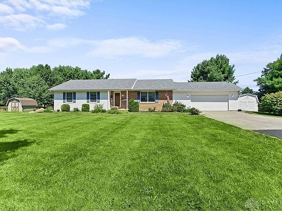 Hard to Find Ranch home with a Finished Basement on 1.3+ Acre lot! This 3 BR and 2.5 Bathroom home is ready to move into! Awesome lot with patio, fire ring, Shed, Chicken Coop and plenty of room to play! Large kitchen offers plenty of cabinet and counter space. All Stainless Steel Kitchen appliances stay as well as the water softener AND the Washer/Dryer! The bedrooms are nice sized and have great closet space! The basement has a finished Family Room, Office or a 4th BR, Large utility room with Cabinets and Utility sink and a Storage room with cabinets and shelving! WOW!!! Wonderful Location on the Clark/Champaign County line! Great for commuters in either county!