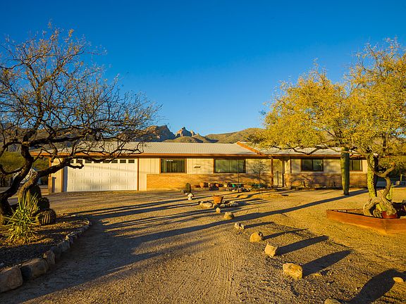 Move-in ready home on near acre lot with captivating Catalina Mountain views! The impeccable home boasts an updated kitchen with custom knotty alder & glass front cabinets, breakfast bar, stainless appliances including NEW electric range. Samsung French door stainless refrigerator. Corner wood burning beehive fireplace. Fresh paint & immaculately clean tile floors, updated windows & doors throughout. Updated baths with tiled showers & tile top executive height vanities. Laundry room with storage cabinets. Updated 50 gallon water heater, NEW Roof & NEW electrical panel. Enjoy morning coffee or dinner with friends on the 40'covered patio with ceiling fans & take in the amazing views of Thimble Peak. Level landscaped lot with 10 Saguaro cacti, multiple mesquite trees & pool size yard! Location is off of Harrison in a small cul-de-sac. One year 2-10 home warranty included. 8' x 24' shed with rolling shelves provides additional storage. Oversize garage with evaporative cooling great for the mechanic. Don't miss seeing this move in ready home on a fantastic north facing lot with Catalina Mountain views!