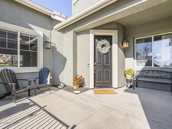 Beautiful and meticulously maintained 2,849 sq ft single-story home situated on a quiet cul-de-sac in one of Sparks' most desirable neighborhoods. This 4 bedroom, 3 bath layout offers an open and bright great room with vaulted ceilings, a wall of picture windows, and a warm gas fireplace overlooking peaceful hillside views. The spacious kitchen features stainless steel appliances, gas cooktop, double ovens, walk-in pantry, concrete countertops, and an extended breakfast bar perfect for gathering. The luxurious primary suite includes a beautifully updated walk-in shower, large soaking tub, dual vanities, and plenty of natural light. Secondary bedrooms are generously sized, providing ideal flexibility for guests, office space, or multigenerational living. The backyard offers an expansive patio, low-maintenance landscaping, and complete privacy with no rear neighbors—ideal for entertaining or quiet relaxation. With excellent curb appeal, a functional single-level floorplan, and pride of ownership throughout, this home is truly move-in ready.