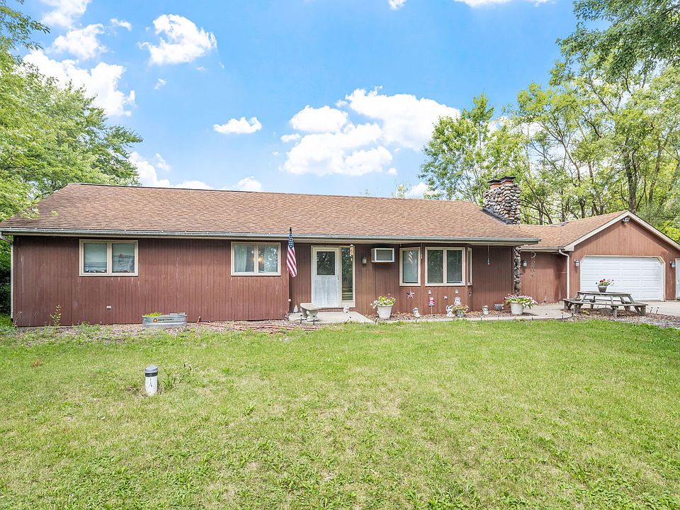 5 beautiful wooded acres with stocked pond and a 40x60 pole barn with concrete flooring. Ranch home with 3 bedrooms and 2 full bathrooms. Screened in patio (16x20) to sit, relax and enjoy the surrounding nature. Horses allowed per seller.