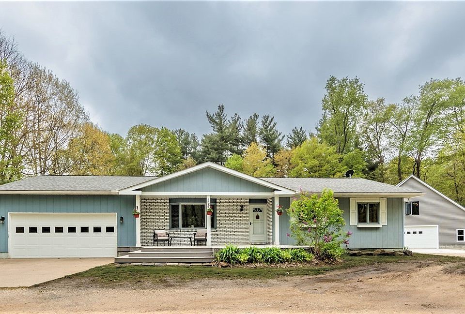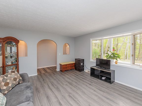 MODERN UPDATED RANCH sitting on 1.75 Acres and Attached 2+ Car Garage. Nestled in the woods the house sets deep and back away from the country road with a private setting. This open floor plan has so much to offer! Newer LVP Wood Floors throughout and Freshly Painted Interior. Unexpected surprise with a Large Addition. Relax on the side or front Deck while taking in the breathtaking surroundings. Large Living Rm w/Bay Window. The Updated White Kitchen features Stainless Steel Appliances, Pantry, and Island Breakfast Bar. Plenty of Cabinets and Counter Space make it a Cooks Dream Kitchen. Take a Look at the 23x23 Vaulted Family Rm w/floor to ceiling Brick Fireplace, Skylights, Bay Window, and Woodburning Stove. Great Heat Source. The 1st fl Laundry & Powder Rm are easily accessible. Master Suite features Vaulted Glamour Bath w/Jetted Tub, Separate Shower, and Sitting area or Dressing Room. The other 2 bedrooms are just steps from the updated main bath. The Lower Level gives Additional Living Space w/Recreation Rm and a woodburning stove. Full divided basement has several rooms for a workshop, storage, and hobby rm or home office. 2nd Laundry room too. Summer Fun w/above ground Pool, Hot Tub, Patio for BBQs and Entertaining. Out Building Barn (2018) w/side patio will accommodate 2-4 cars and storage on the second-floor loft. Roof-2016, Furnace-2020, Air Conditioner-2020, Windows-2013/2023. Move-In Ready. Great House to Call Home. View Today!