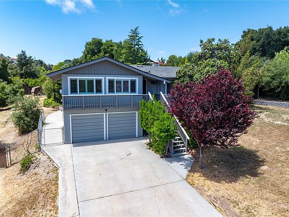 Thoughtfully updated home featuring 2168 sf, 5 bedrooms, 3 bathroom on 0.68 acres in a well established neighborhood in Atascadero. Stepping through the front door you are greeted by the handsome laminate wood floors that flow throughout the home. In the entryway there is a half wall of built in bookshelves to house your book collection or use for storage. The living room boasts a lovely wood burning fireplace, plantation shutters and flows nicely into the dining area and kitchen. The kitchen is bright and offers ample cabinetry and counterspace. Down the hall we find two of the guest bedrooms, main bathroom, bonus room and primary suite. The primary suite is generously sized and boasts a walk in closet, ensuite bathroom and multiple windows that bathe the room in natural light with plantation shutters. The updated ensuite bathroom features a lovely quartz topped vanity, laminate wood floors and a tub/shower combination with tile surround. On the way to the two guest rooms we find a bonus room that could be used as a TV room, playroom or maybe exercise room. Downstairs we find the remaining two guest bedrooms and third bathroom. Outside you can enjoy the lawn or play some basketball on the concrete pad. At the back of the property you will find two sheds, a chicken coop and plenty of room for expansion. The expansive driveway offers plenty of room for parking plus there is additional space for RV, trailer or RV parking! The home is also equipped with solar to help reduce your electricity bills. It is conveniently located close to freeway access, schools and shopping. Please see the Virtual Tour for additional photos and information including room dimensions.