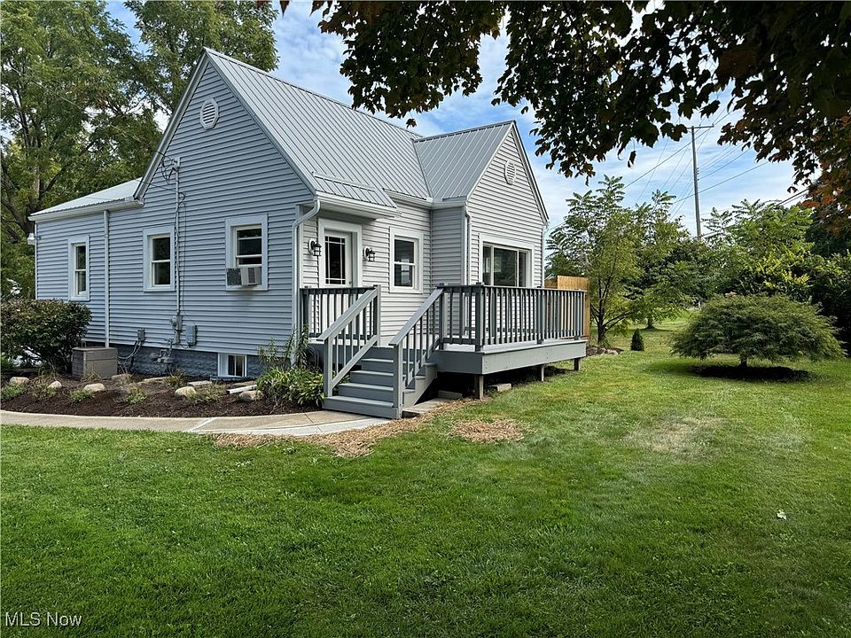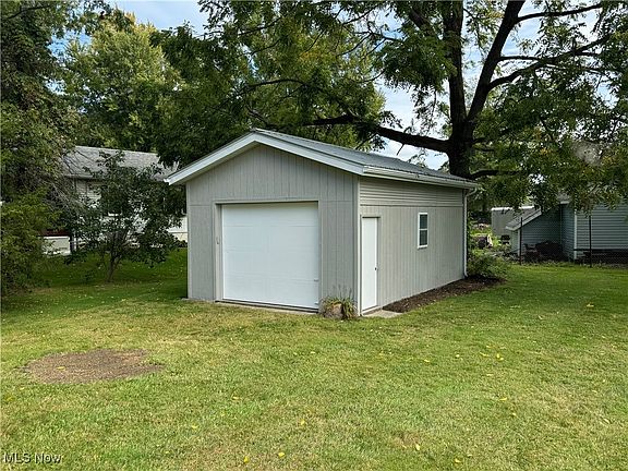 ABSOLUTELY ADORABLE !!!! This 2 bedroom 1 bath ranch is move in ready !!! Pull in the driveway and go up the landscaped walkway (with new retaining wall) and then on to your front porch and into your living room with wood floors and freshly painted. Both bedrooms and dining room and also freshly painted and have wood floors. Remodeled bathroom with new walk in shower. Beautiful remodeled kitchen with tall cabinets for tons of storage and granite countertops and deep new stainless steel sink, vinyl flooring and stainless steel appliances. Off of the kitchen is the private deck ready for you to grill for your family picnics. The landscaping is immaculate. Home has metal roof and vinyl siding. Basement has been dri-locked and has laundry room. Freshly painted garage and new drainage. Home has big closets, city water and 2 car attached garage with 2 new garage doors with garage door openers. 16 x 24 outbuilding with electric, metal roof , cement floor and new garage door opener. This home is move in ready in a great location close to Geneva On The Lake, all the wineries and Lake Erie !!!!