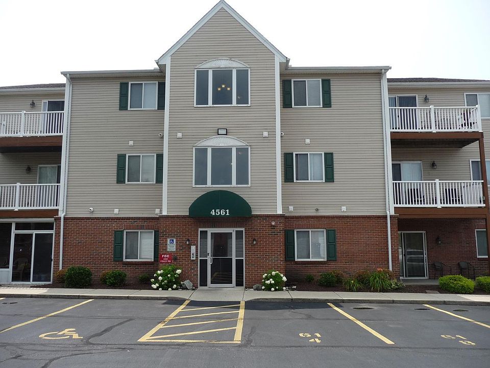 Lovely 1st floor, 2bdrm, 2 full baths. A galley equip kitchen, new flooring, updated high eff GFA furnace & central air. Newer HWH and some new flooring. Liv room w/walkout to patio. Small pets allowed. Oversized 1 car garage. New paint through out.