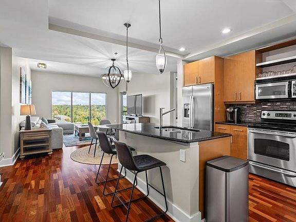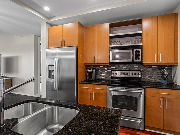 Unobstructed viewsFloor to ceiling windowsStainless steel appliancesModern kitchen with islandCustom cabinetry