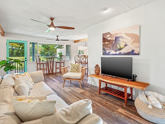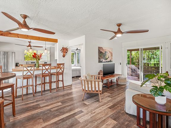 This multi-unit potential property (build an ADU) has a renovated house with modern amenities and a sizable rear lanai, perfect for al fresco dining. It also has a detached workshop, fruit-bearing trees, and colorful landscaping in a private setting with a fenced yard on a dead-end street just off the highway.