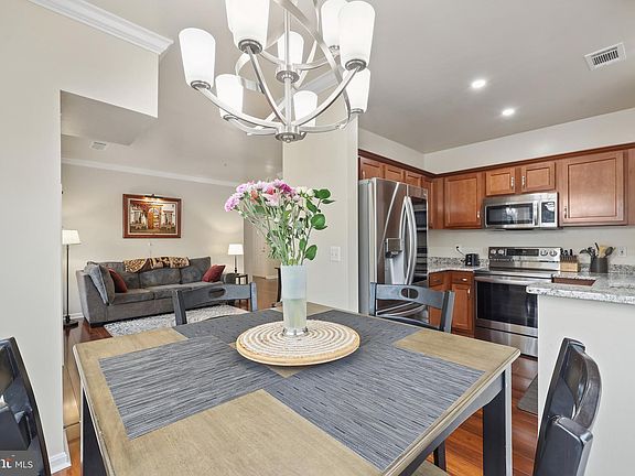 Welcome home to this well-maintained 2-bedroom, 1-bathroom condo in Alexandria, ideally located in the sought-after Palazzo at Park Center. This home welcomes with gleaming hardwood floors that extend throughout the main living areas, adding warmth and style. The bright kitchen is designed for both functionality and aesthetics, featuring granite countertops that offer plenty of prep space, stainless steel appliances,  a built-in microwave and dishwasher. Ample cabinet space ensures convenient storage for kitchen essentials. The light-filled dining area is perfectly positioned near the kitchen and living room, creating an inviting setting for meals and gatherings. Both bedrooms are generously sized with large windows that bring in natural light and offer flexible layout options. The home includes two private balcony spaces—one accessible from the living room and another from the bedroom—providing peaceful spots for relaxing or enjoying your morning coffee. A front-loading washer and dryer are tucked away inside the unit for added convenience. An assigned garage parking space (#456) offers secure and hassle-free parking. The amenity-rich community features a well-equipped fitness center, outdoor pool, and a stylish clubhouse. The location offers unmatched convenience, with shopping centers, restaurants, gyms, and everyday necessities just minutes away. Easy access to I-395 allows for a quick and efficient commute to Washington, DC, making this home a perfect blend of comfort, convenience, and location.