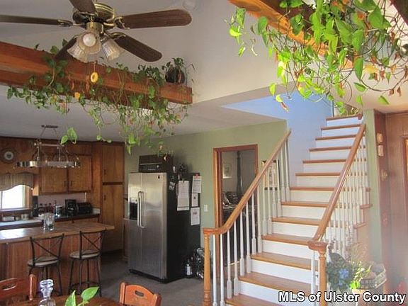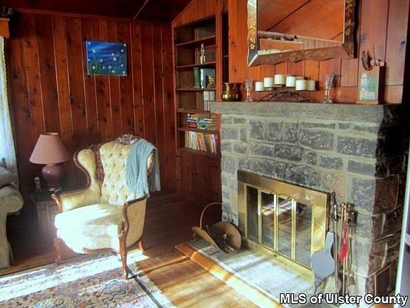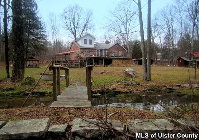 Inspirational setting and a fantastic place to entertain. This 2.6 acre mountain compound is sophisticated and fun. Overlooking protected lands but only moments to the amenities of Stone Ridge, it is perfect for an artist, tinkerer or visionary. Throughly insulated and recently updated with care to preserve the many original details. The red cedar great room with bluestone fireplace emanates a rustic warmth. Expansive walk-out basement was once an in-law apartment -- now, spacious enough to accommodate a pool table, it could be an excellent "Man-cave" or art studio. Oversized, heated two car garage has 220 amp service. The lush backyard hosts a cabana, a hot tub and an electrified stage. The pond is spring fed, picturesque and offers amazing bird watching opportunities. This country get-away is the ideal environment to work and play, a blank slate with a lot of character, incredible flexibility and potential.