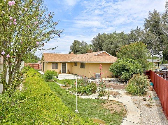 Spacious Single story home located on a quiet tree lined street in Riverside. This home offers over 1600 sqft of living space with 3 bedrooms, 2 bathrooms and a large permitted room addition in the back right off of the dining room and kitchen. There is a lovely brick fireplace in the dining room which is adjacent to the kitchen. The addition has a beautiful stained glass window along with 2 doors leading to the back yard. The backyard is complete with a grassy area, many mature plants, a concrete walkway and a newer patio slab with patio cover. There is a 2 car garage that is attached but no direct access into the home. As per the homeowners the roof is a newer comp shingle.