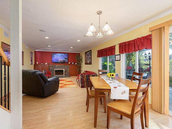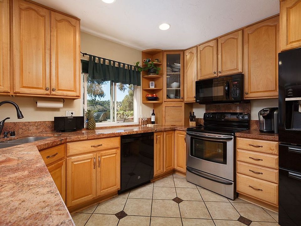 Peaceful western, Mount Soledad views. This home was remodeled in 2007 with an 800 square feet addition. The kitchen features beautiful granite counters, tile floors, a breakfast bar and a kitchen pantry. Huge master suite, plus four bedrooms and an office. Laminate wood floor in the family and dining room. Family room fireplace, surround sound and recessed lighting. Entertain in your view backyard with stamped concrete patio, built-in BBQ, sink and wine refrigerator. Must see home! Wonderfully updated home with western views of Mount Soledad, and located in the desirable Bay Ho Palisades neighborhood. This home is well laid out for entertaining with all living areas downstairs, separate living room and family room, and a nice sized back yard. This home features an open concept kitchen with beautiful granite kitchen counters, breakfast bar, kitchen pantry, wood cabinets, under-stair built in wine storage cabinet and tile floors. The kitchen corner sink allows you to conveniently keep an eye on the dining room, family room and back yard area all at the same time, allowing you to more easily enjoy your household and guest's company. This home boasts of an over-sized master suite with a second story walk out deck and Mount Soledad views, plus four more upstairs bedrooms AND an upstairs office with a murphy bed. Easy care laminate wood flooring throughout the family room and dining room. Three bathrooms -- two upstairs and a half bath downstairs. The staircase features wrought iron balusters and useful under-stair storage for storing game night board activities, DVD's, extra sofa pillows and blankets ... The family room gas fireplace with adjoining cherry wood cabinets, creates a cozy and romantic atmosphere. The backyard is perfect for entertaining with it's stamped concrete patio, and built-in barbecue, sink and outside wine refrigerator. This home was remodeled in 2007 with an 800 square feet addition. Other home updates include dual pane windows, leaded glass front
