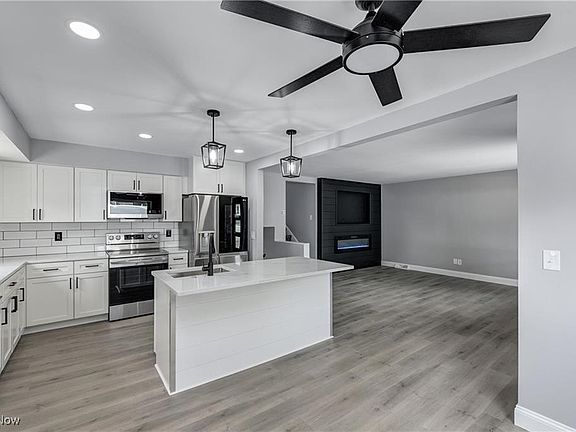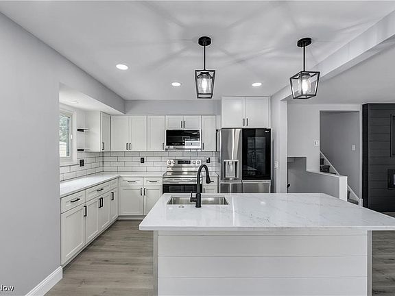 Step inside this stunning split-level home with a wide-open floor plan featuring a brand-new kitchen with quartz countertops, modern cabinets, and top-of-the-line appliances, all complemented by vinyl flooring. Adjacent to the kitchen is a spacious family room with a cozy electric fireplace—perfect for relaxing or entertaining. Upstairs, you’ll find three bedrooms with newer carpeting and a completely renovated full bath. The lower level offers a second full bathroom, laundry room, and additional living space. Outside, enjoy a fenced-in yard with newer sod and fresh landscaping, perfect for outdoor gatherings or play. This move-in-ready home combines modern upgrades with functional living spaces. Schedule your showing today—this one won’t last!